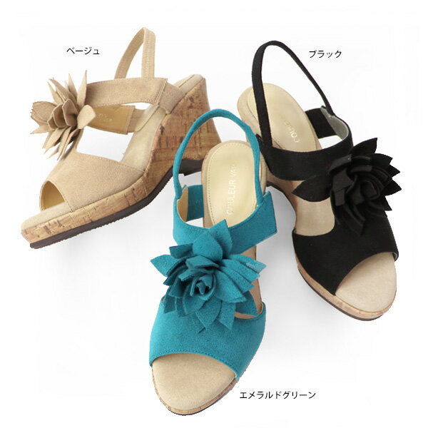 [生産国] インドネシアカラーバリエーション ブラック ベージュ エメラルドグリーン No.844205 クロールバリエ フラワーモチーフ ウエッジ サンダル 汚れたら洗濯機で丸洗いできる、お手入れ簡単「COULEUR VARIE(クロールバリエ)」。