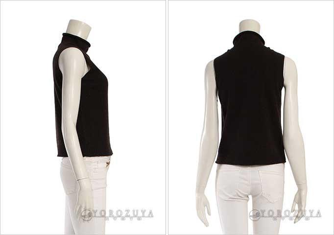 HERMES エルメス タートルネック ノースリーブ ニット カシミヤ ダークブラウン 【中古】