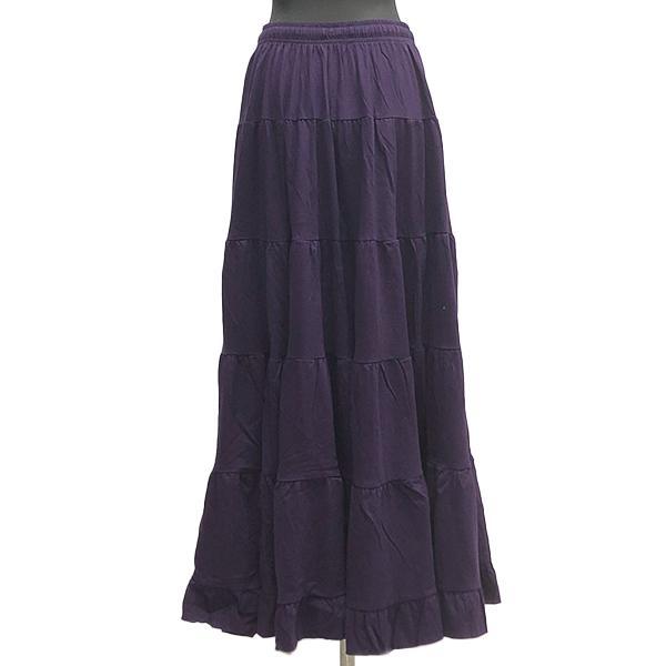 【outlet】エスニック アジアン ロングスカート 大きいサイズ 無地 プレーン ティアード フレア ゆったり XL 3L 4L パープル アジアン雑貨 ゴア *00