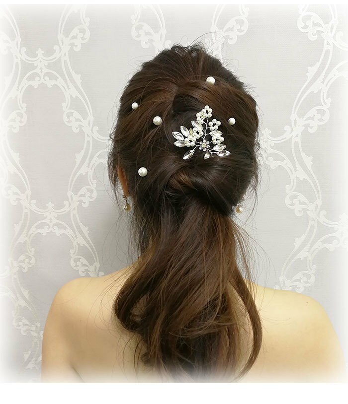 そんなビジューUピンをお買い上げのお客様に、今だけパールUピン5本をプレゼント!メインのビジューUピンのまわりに挿すだけで華やかさアップ♪