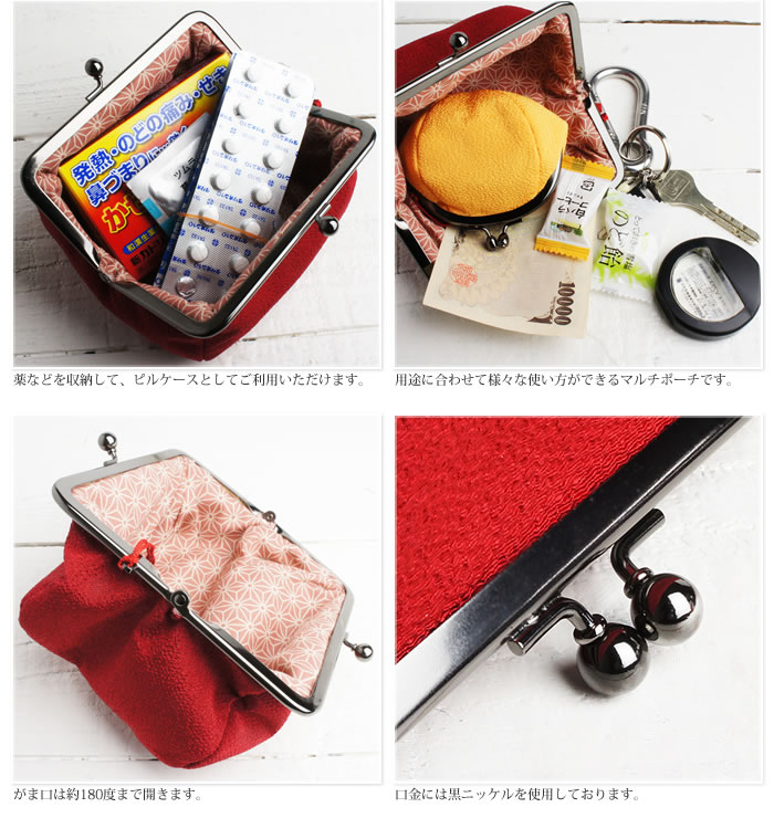 項目 内容 タイトル 日本製 京都 レディース がま口 財布 口金 ポーチ 横長 金運 縁起【京都ちりめん】風水 春財布 がまぐち 和風 招き猫 長寿 母の日 敬老の日 小銭入れ ピルケース コスメポーチ サイズ W15.0cm×H10.0cm×D8.0cm 重さ 約55g 素材 外側:ポリエステルちりめん 内側:コットン 生産国 日本 カラー レッド、オレンジ、イエロー、グリーン、パープル 仕様 メインポケット×1京都縁起ちりめん小銭入れ 京都縁起ちりめんミニポーチ 京都縁起ちりめんポーチ 京都縁起小桜文様巾着袋 京都縁起麻の葉文様巾着袋 京更縁起動物ストラップ 花指しゅう二つ折り財布 花指しゅう親子がま口財布 花指しゅうがま口小銭入れ