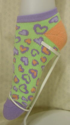 【送料無料♪】レディス カラー切替(ハート柄)、スニーカーソックス<グリン(ハート柄)×パープル×オレンジ:23−25cm>【靴下】【スポーツソックス】【山ガール】【ランニング】【カラーソックス】
